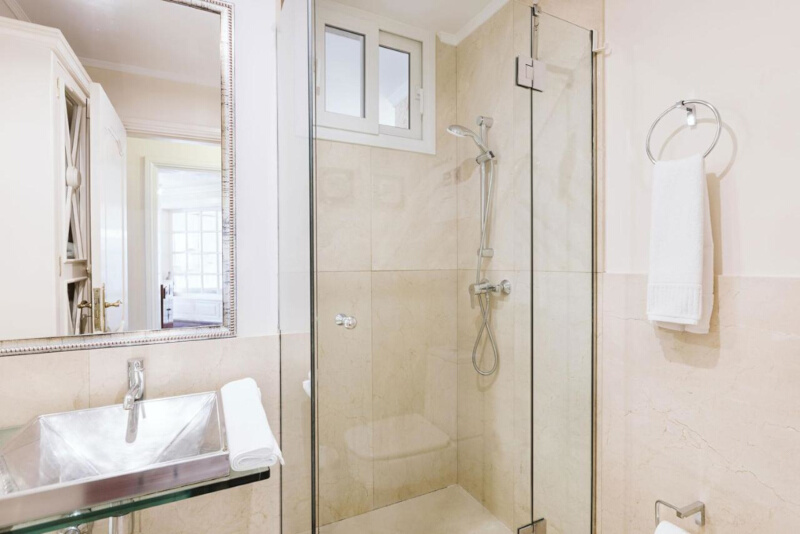 El área exterior dispone de cuatro tumbonas y una mesa con capacidad para seis personas, ideal para disfrutar junto a la piscina.